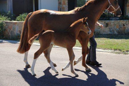 His sire, Belissimo M, is renowned for his riding qualities and was a record breaking stallion performance test winner, Bundeschampion, and a finalist at the World Championships for young dressage horses. He is a proven performance stallion achieving victories and placings in Grand-Prix with Australian rider Hayley Beresford. Belissimo M has produced many top highly priced auction horses, performance test winners, licensed sons and five Bundeschampions and a double bronze medal winner of the World Championships for young dressage horses in Verden. His most famous son is Callaho's Benicio became, Bundeschampion of the six-year-old dressage horses in Warendorf. Benicio also won his stallion performance test with 9.88 in dressage (a 10.0 for trot, walk and canter each) and an 8.43 for jumping! In 2011, his oldest offspring competed in the advanced class for the first time – already five of them were successful at this stage, several times even as winners.